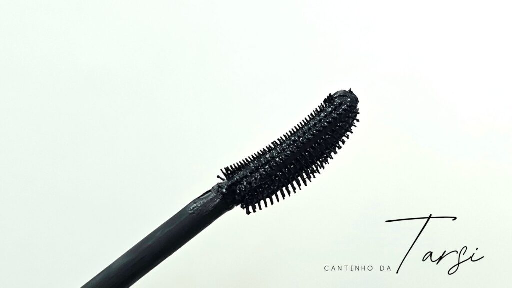 O aplicador é um dos diferenciais: tem dez camadas de cerdas, é bem flexível e alcança até os cílios do cantinho interno. Eu costumo aplicar duas camadas e gosto do resultado — não empelota e deixa os cílios mais definidos e com aspecto natural.